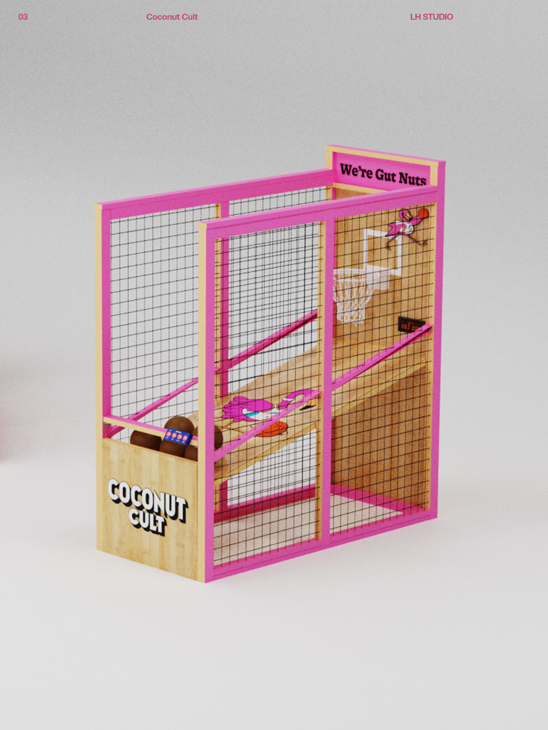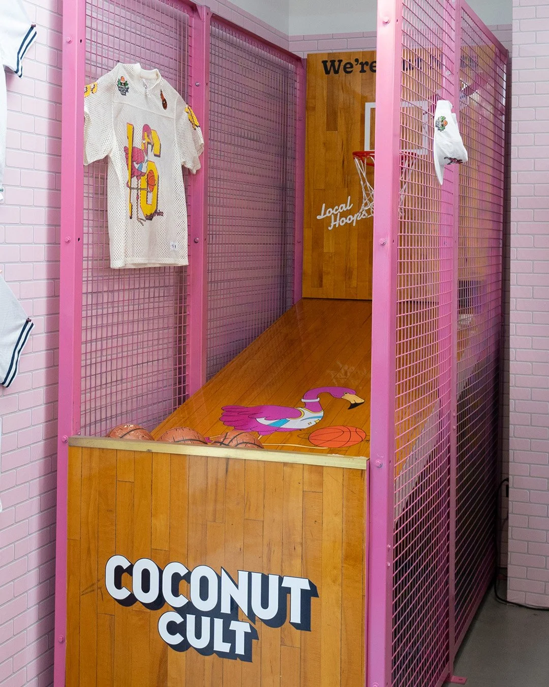 We designed and built a custom Pop-A-Shot for Coconut Cult using reclaimed basketball court wood, blending sport, sustainability, and craft into a functional centerpiece. We also created a capsule collection for their pop up store in NYC.
